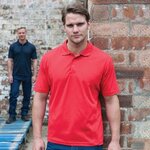Set-in sleeve design with 3 button placket. Self coloured buttons. Side vents. Fabric with wicking properties and anti-bacterial finish. Self fabric taped back neck. Flat knit rib collar. Twin needle stitch detail on cuffs and hem. Tear off label for rebranding. Worldwide Responsible Accredited Production (WRAP) certified production.
