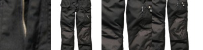 Zip fastened with metal button waistband attachment. Velcro™ adjustment on waist. Cordura external knee pad pouches and Cordura hem. Multi-pocket detailing with tool pouches. Cargo pocket with multi-sections and stud fastened flap. Hammer loop. Two back patch pockets, one with stud fastened flap. Waist (to fit) 30" 32" 34" 36" 38" 40" 42" Inside Leg Short - 30", Regular - 32", Tall - 34"
