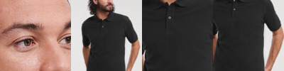 2 button placket with matching colour buttons. Flat knit collar and cuffs. Twin needle hem at bottom. Side vents.