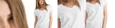 Short-sleeved T-shirt. Feminine V-Neck collar in self fabric with edge stitching. Raglan sleeves. Bottom and sleeve hems with double top stitching. Inside flatlock for more comfort. Necktape. Side seams.