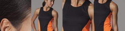 100% polyester with moisture management finish. Contrast side panels with flatlock stitching. Contrast ‘V’ inserts at lower hem. Straight front hem, curved back hem. Self fabric bound armholes. Gamegear® woven label. Size 8, 10, 12, 14, 16