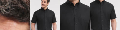 Cotton with Elastane for added comfort, fit and shape retention. Pearlised self coloured buttons. Shaped side seams. Fitted shape. Curved hem. Removable collar stiffeners and extra set.