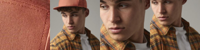 Casual short sleeve shirt, classic style in a soft to touch peached fabric. Relaxed button down collar with a dye-to-match herringbone tape along neck seam, left chest pocket and fabric patch tab on back yoke and side seam hem. Curved hem.
