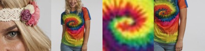 Double-needle stitched neckline and sleeves. Sublimation printed Tie-Dye pattern. Contoured silhouette with side seams. Minor white creases may appear due to the nature of sublimation printing around underarms and edges.