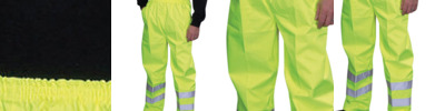 Hi-vis yellow conforms to EN ISO20471:2013 Class 1 & EN343 against foul weather.Black and Navy provide enhanced visibility (non-EN471 standard). 100% waterproof Polyester with Oxford PU coating. Two 5cm wide reflective bands around lower legs. Elasticated waistband. Snap buttons on the bottom for adjustment. More colours available, code HVS462 & HVS463. Matching jackets, code HVP211, HVP218, HVP300, HVP301 & HVP303.