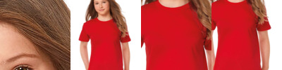 Innovative Sofspun® fabric with super soft feel. Fashion fit for a retail look. Crew neck with cotton/Lycra® rib and single needle stitching. Self-fabric shoulder to shoulder taping.