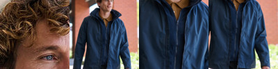 Waterproof Hydrafort 5000 peached polyester fabric. Polyester taffeta lining. Windproof fabric. Critically taped seams. (Inner) 220 series anti-pill symmetry fleece. 2 Lower pockets. (Special Features) Concealed hood with adjuster. Adjustable cuffs. 2 Zipped lower pockets. Hook and loop fastening at hem for embroidery access.
