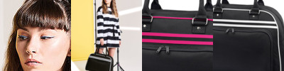 Retro styling. Self fabric carry handles. Zippered front pocket. Internal zippered pocket. Internal mesh pockets. Size One size