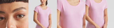 Shaped side seams for a feminine fit. Cotton/Lycra® rib crew neck with taped neckline. Produced using Belcoro® yarn for a softer feel and cleaner printing process. Fine knit gauge for enhanced printability