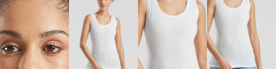 Shaped side seams for a feminine fit. Self-fabric binding to neck and armholes. Produced using Belcoro® yarn for a softer feel and cleaner printing process. Fine knit gauge for enhanced printability