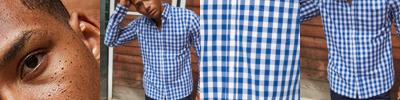 Slim fitting casual checked shirt. Button down collar. 2 button cuff.