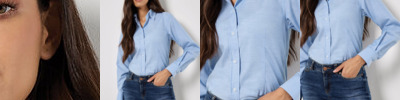 Blended polyester/cotton Easy Care poplin fabric providing comfort and durability. Soft fused feminine collar. Folded sleeve hem. Darts at bustline, front and back panels for adjusted fit. Cross stitched matching mother of pearl effect buttons. Horizontal last buttonhole. Modern rounded bottom hem. 1 spare button.