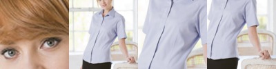 Easycare finish. Self coloured buttons. Shaped side seams and darts. Fitted shape. Removable collar stiffeners and extra set.
