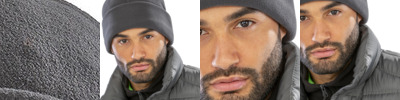 Quilted lining, buttoned ear flaps, self-fabric adjuster with bronze effect buckle, Rip-Strip™ chin strap.