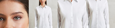 Ladies easy-care long sleeve blouse with improved wear and appearance. Supreme poplin. Soft collar styling. Rounded bottom hem. Fitted styling with bust and back darts. Double buttons on cuff. Easy cut-out label for rebranding. Made from OEKO-TEX® Standa