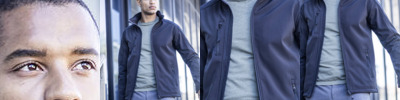 Softshell 3 layer bonded fabric. Performance membrane mid layer and microfleece inner layer. Fitted style, zip through front. Two front zipped pockets and one zipped pocket on left sleeve