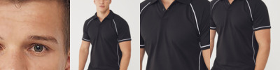 Made using Coolplus® specially modified polyester fibres enable rapid absorption of perspiration from skin surface. Piping along raglan seams and down front and back. 2 button placket self fabric collar. Raglan sleeve.