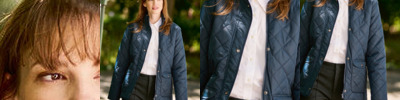 Quilted water repellent micro poplin. Thermo-Guard insulation. Polyester taffeta lining. 2 Lower patch pockets with side hand warmer entry. Back vents with stud fastening. Internal side seam zipped embroidery access.