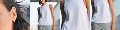 Crew neck vest with raw edge slash armholes. Twin-needle stitching at hem. Removable Skinnifit label.