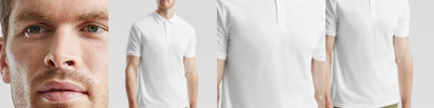 Taped neckline. 3 button fused placket, selfcoloured buttons. Reinforced shoulder seams with single needle stitching. Ribbed flat-knit collar and cuffs.