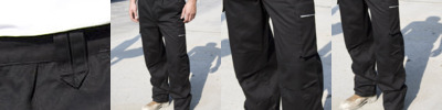 Front zip with stud fastening. Hand warmer side pockets. Cargo multi use front pocket with tear release closure. Expandable waistband. 4 patch pockets, two with zip closing. Rear pockets. Mobile phone pocket. Hammer and belt loops. Critical stress point bar tacking. Twin needle stitched seams. 2 hem for longer leg lengths. Comfort fit. Durable and hardwearing finish. Expansion waistband allows for adjustable fit and draught protection. Fantastic price point. Unisex fit. Windproof.
