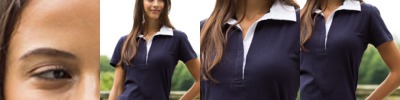 Contrast side panel. Piping and panel on sleeves. Taped neck. Contrast piped inner placket. Three button placket. Shaped side seams. Matches LV390. WRAP approved manufacturer.
