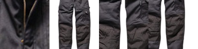 Front zip with rivet fastening. Knee pad pockets. 2 side pockets. Left thigh phone pocket and zip pocket. Cargo multi-use tool pocket. Elasticised waistband. Rear pockets. Belt loops. Reinforced seams with bar tacked pockets and stress points. Triple stitched seams. Decorative reflective stripe. Strengthened contrast knee fabric. Tricot waistband for comfort feel inner. Comfort fit. Highly durable fabric. Expansion waistband allows for adjustable fit and draught protection. Highly technical. Fantastic price point. Black contrast panels and red stitch detailing. 2 trouser turn-up for lengthening if required. Unisex fit. Windproof.