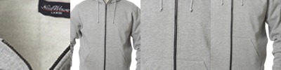 Men's hood sweatshirt, rib inserts with eyelets at armpit. 3 needle decoration stitching. Hood in double layer of body material.
