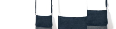 Fashionable denim crossbody foldover messenger bag. 100% cotton, garment wash. Flap zip closure. Crossbody bag: long shoulder handle in denim. Two color shades: Deep blue denim side and reverse denim side (you can choose your side). Metallic zipper in antic brass, heavy size.