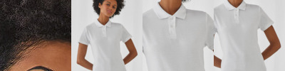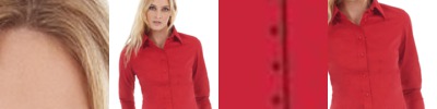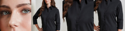 ¾ sleeved Poplin shirt. Cotton/Elastane stretch fabric. Buttons in matching tones. Feminine fitted cut. No pleat on back panel for optimal printing and embroidery. 2 spare buttons. 40° washable.