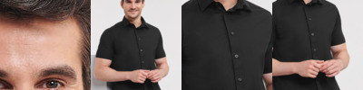 Stretch fabric for added comfort and fit; requires minimal care, 7 button placket with matching colour buttons. Smart, semi cut-away collar with single pearlised button.