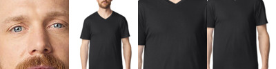 Deluxe 30’s Soft style yarns. Non topstitched ¾” rib knit collar. Taped neck and shoulders. Mitred V-neck pattern. Euro style fit in neck/shoulders/sleeves. Twin needle sleeve and bottom hems. Quarter-turned to eliminate centre crease.