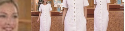 Round Neck , 7 button front, step in dress. Two concealed side seam pockets. Metal coated contrasting “gold” buttons. Welted left breast false pocket. Rear darts for contoured fit. Ideal for beauty & health applications. Made from Klopman’s revolutionary Comfort Stretch fabric for feel and ease of movement. Crease resist finish.