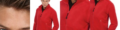 Outdoor Raw Fleece. Full-zip opening with zip puller. 2 zipped front pockets. Open hem with 'drop' back. Binding polyester fabric at collar, armholes and bottom hem in matching tones.
