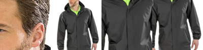 Fully taped waterproof seams. High collar design. Concealed 3 panel fold-away adjustable hood in collar. Full front zip fastening with storm flap cover. 2 front pockets. Inside pockets. Elasticated cuffs with tear release adjusters. Adjustable shock hem cord. Luxury single jersey lining in body with fully lined Polyester material sleeve. Long fit with fashion cut back. This garment contains over 25% of recycled materials. Waterproof. Windproof. Mid weight.