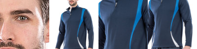 Polyester spandex base layer with flat lock stitching on seams and raglan armholes. Turtle neck for decoration. Can be worn as a second skin or on its own. Gives warmth and dryness during exercise. Individually poly bagged.