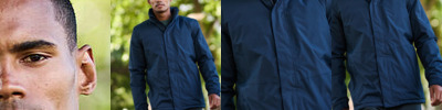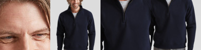 Cadet collar with single jersey back neck tape. Covered zip for enhanced printability. Waist and cuff in cotton/Elastane rib.