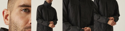 Waterproof and breathable Isotex 5000 coated polyester twill microfiber. Part mesh part polyester taffeta lined. Taped seams. Interactive Concealed hood with adjuster. Studded double stormflap. Adjustable cuffs. Internal map pocket. 2 zipped chest pockets. 2 lower patch pockets with side hand warmer entry. Internal mobile phone pocket. Adjustable shock cord waist and hem system. Internal zipped embroidery access