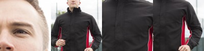 Contour shaped panels. Full front zip with inner storm flap. Stand up collar. Thumbhole cuff. Back pocket with self lock waterproof zip and reflective print detail. Reflective front print detail. Longer length back panel. Shaped waist. Media player loophole. Soft athletic stretch fabric. Comfort fitted style in a compound knitted soft shell. Contemporary streamlined design. Quick dry main body panel treatment. Pocket free to aid streamline contour shape.