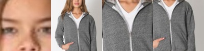 Metal zipper, kanagroo pockets, with 1/2" pocket hem and 1/4" coverstitch 2 1/4" 1/1 fleece rib arm cuffs and waistband