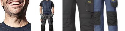 Craftsmen ripstop light weight material holster pocket trousers with reinforced Snickers gusset, twisted leg design for freedom of movement, kneepad pockets, reinforced Cordura on knees, holster pockets & cuffs.