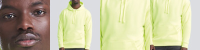 Vibrant eye-catching colours. Flat lace drawcords. Twin needle stitching detailing. Kangaroo pouch pocket with small opening for ear phone cord feed hidden ear phone loops. Ribbed cuff and hem. Worldwide Responsible Apparel Production (WRAP) certified production.