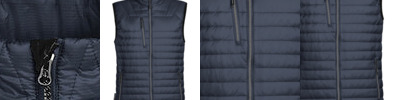 STORMTECH D/W/R durable water resistant outer shell. Quilted body with ultra soft liner. Centre front vilson zipper with contrast zipper teeth. Quilted collar. Adjustable hem. Brushed tricot hand warmer pockets. Zippered pockets. Chin saver. Internal full-length storm flap. Inside pocket. Embroidery access.