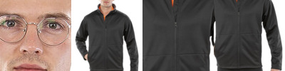 3 layer waterproof bonded fabric. 4 way Super Stretch Soft Shell. Wind stop inner zip flap. Comfortable active fit. Zip through neck. Wind protect long back. Two zip closing pockets.