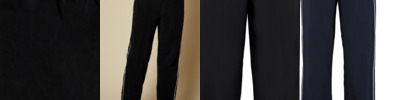 Elasticated drawcord waist. Two side zipped pockets. Straight hem. Lower leg opening with zip fastening. Contrast piping down outside leg. Also available in kids'