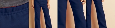 Air jet yarn; softer feel and no pilling. Covered elastic waistband. Differential rise for better fit. Slightly tapered leg with open bottom. Twin needle bottom hems.