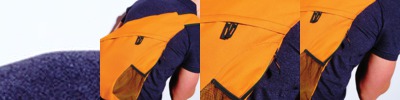 Zippered side pocket. Mesh pocket for mobile phone/MP3 player. Side mesh bottle holder.