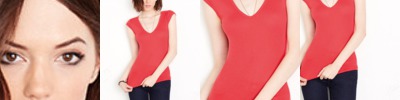 A deep v-neck, slim body and mini capped sleeves in this sheer rib style create a sexy silhouette. Longer than standard body length with 0.95cm binding at neck and sleeve with coverstitched 3cm bottom hem.