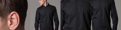Soft fused mandarin collar. Concealed placket. Adjustable cuffs. Shirt tail bottom. Double folded side and sleeve seams. Single needle stitched yoke and armholes. Spare button. Bargear® Woven label. Collar to fit S - 14.5" M - 15-15.5" L - 16-16.5" XL - 17-17.5" 2XL - 18-18.5"